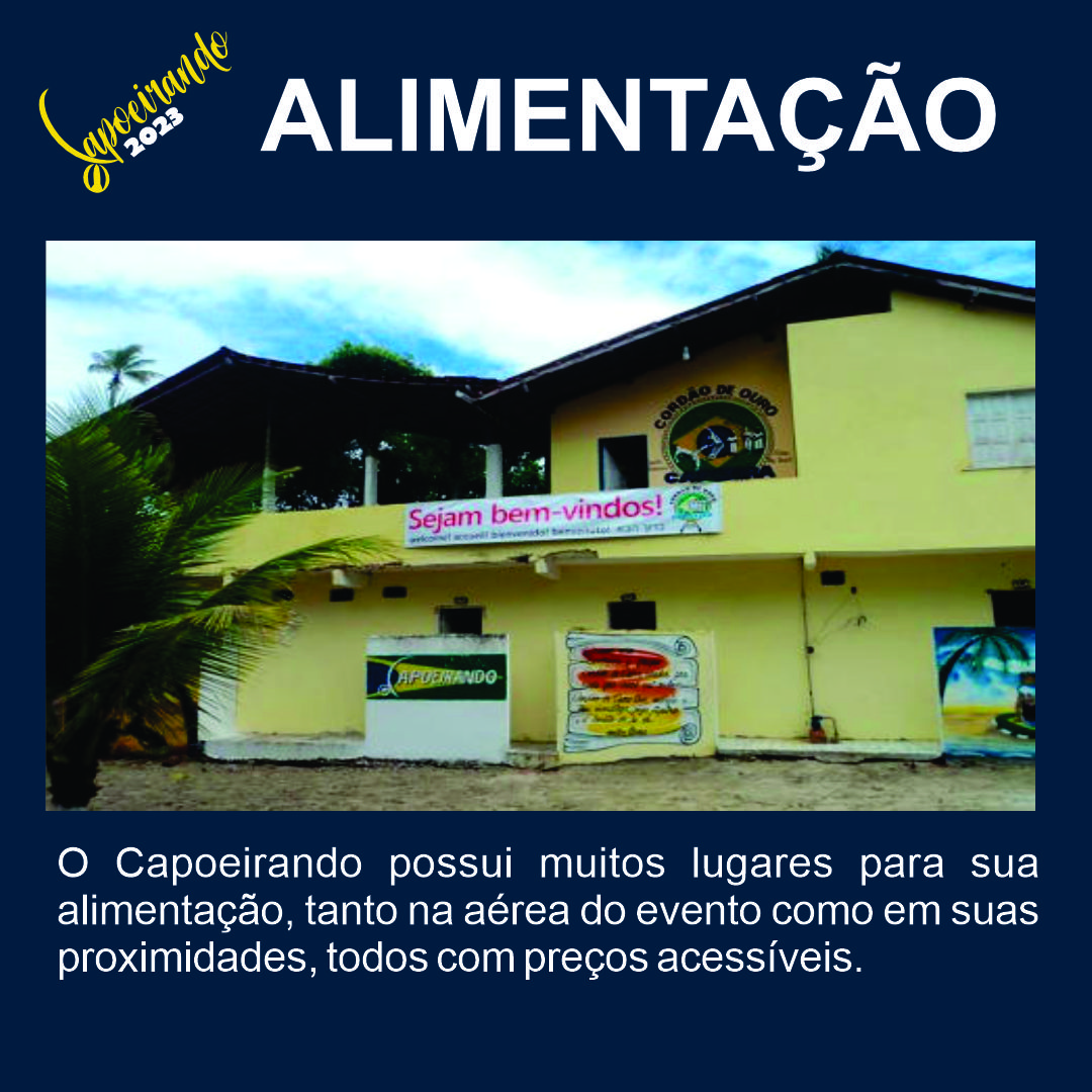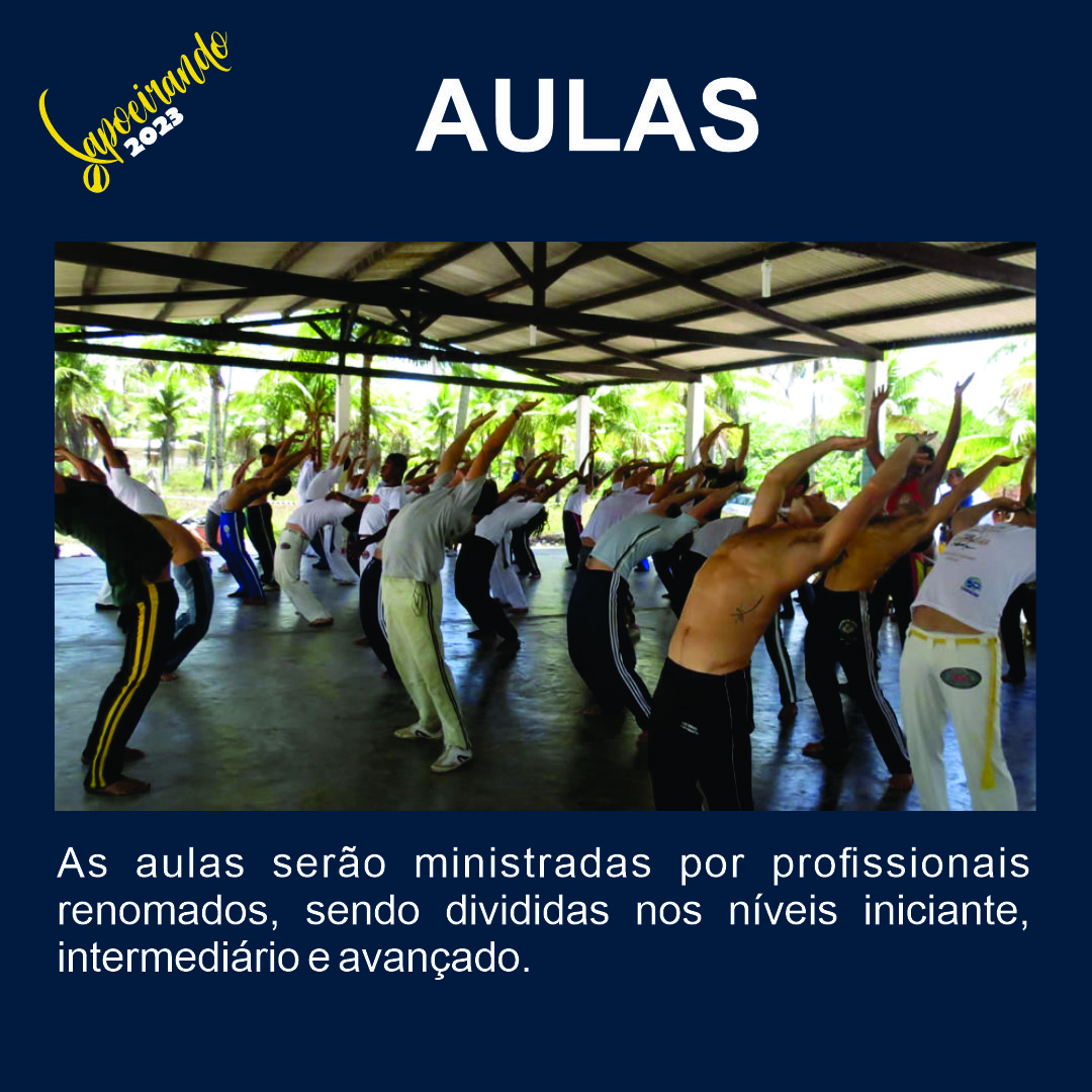 Você também terá a oportunidade de conhecer diversas pessoas, ampliar seu ciclo de amizade e ainda enriquecer seus conhecimentos agregando valor à sua Capoeira. As aulas e rodas acontecem nos períodos da manhã, no final da tarde e a noite, divididos em três galpões podendo somente participar quem fizer sua inscrição e adquirir sua pulseira de acesso.