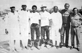 Mestres João Grande, Paulo dos Anjos, Lucas, Burguês, João Pequeno, Itapuan e Suassuna.