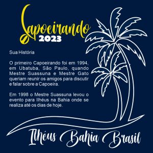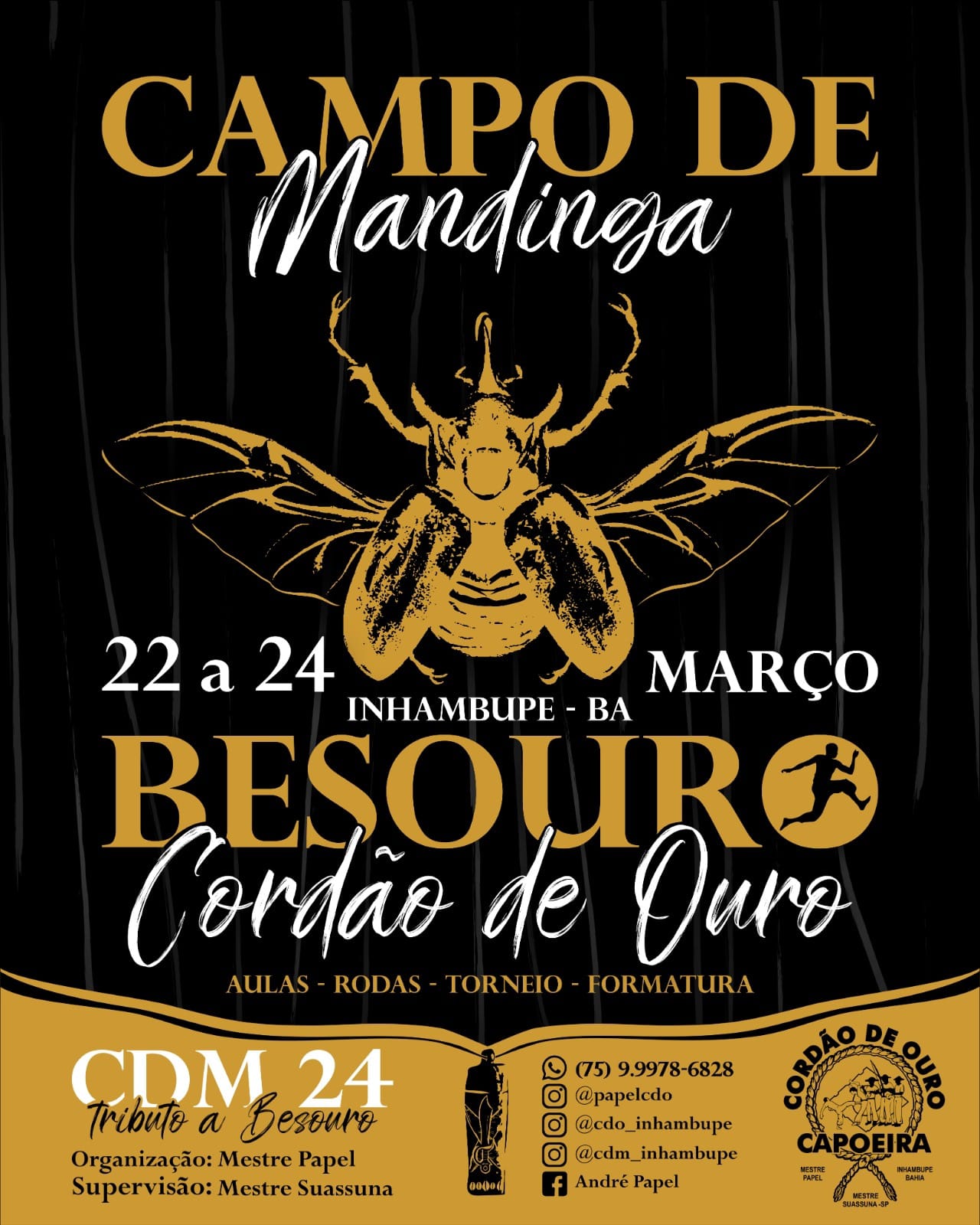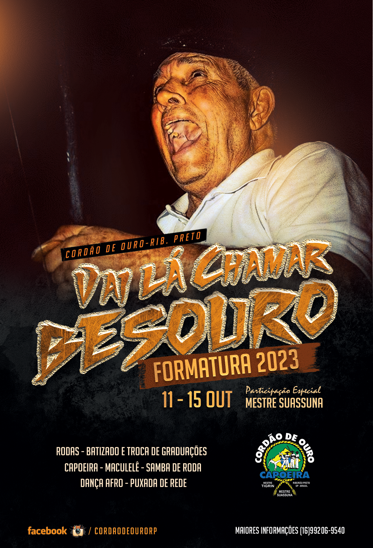 Entre os dias 11 e 15 de Outubro de 2023 realizaremos o evento internacional “Vai Lá Chamar Besouro 2023 – Formatura”, trata-se de um evento cultural a ser realizado na cidade de Ribeirão Preto, onde os  participantes vivenciarão por meio de aulas práticas e teóricas, oficinas de musicalização, workshops, rodas de capoeira, apresentações, entre outras atividades, o brilhantismo da nossa cultura.