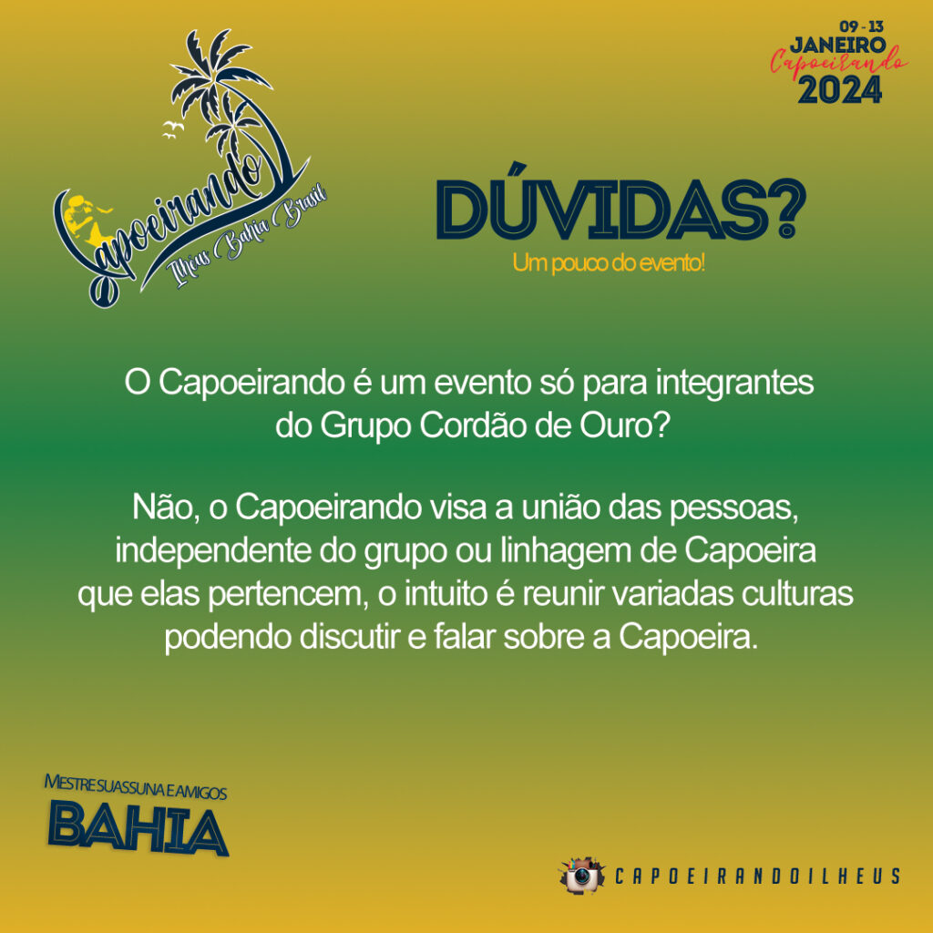 The post CAPOEIRANDO – 09 a 13/01/2024 first appeared on Grupo Cordão de Ouro.