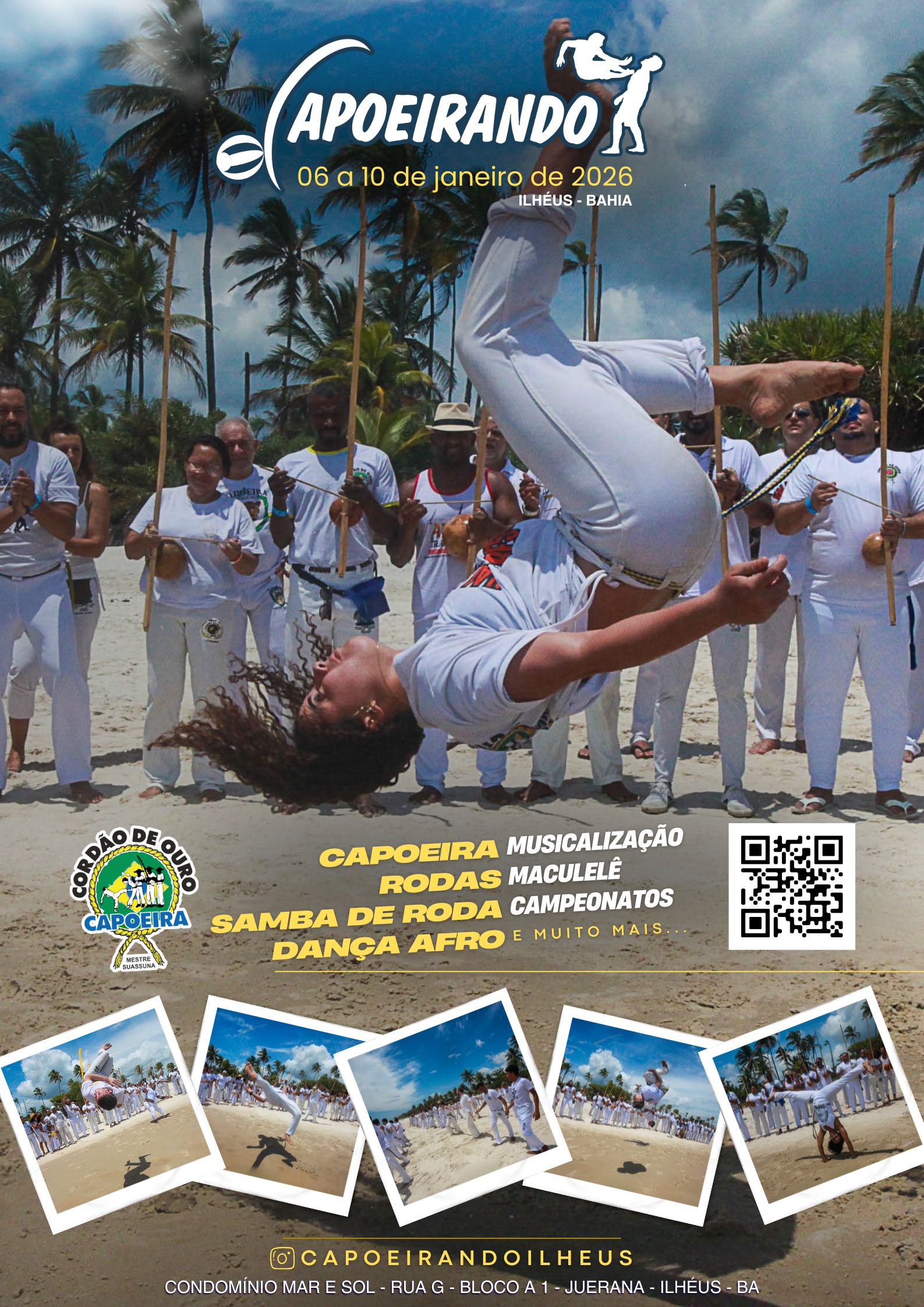 Grupo Cordão de Ouro https://cordaodeouro.com.br Associação de Capoeira Cordão de Ouro Wed, 17 Sep 2025 21:17:18 +0000 pt-BR hourly 1 https://wordpress.org/?v=6.8.3 https://cordaodeouro.com.br/wp-content/uploads/2021/07/cropped-A_GERAL-32x32.jpg Grupo Cordão de Ouro https://cordaodeouro.com.br 32 32 CAPOEIRANDO-2026 https://cordaodeouro.com.br/2025/09/17/capoeirando-2026/ Wed, 17 Sep 2025 14:55:27 +0000 https://cordaodeouro.com.br/?p=3534 O Capoeirando acontece sempre no começo do mês de janeiro em Ilhéus, um dos litorais mais lindos do sul da Bahia. Conta com a presença de […]