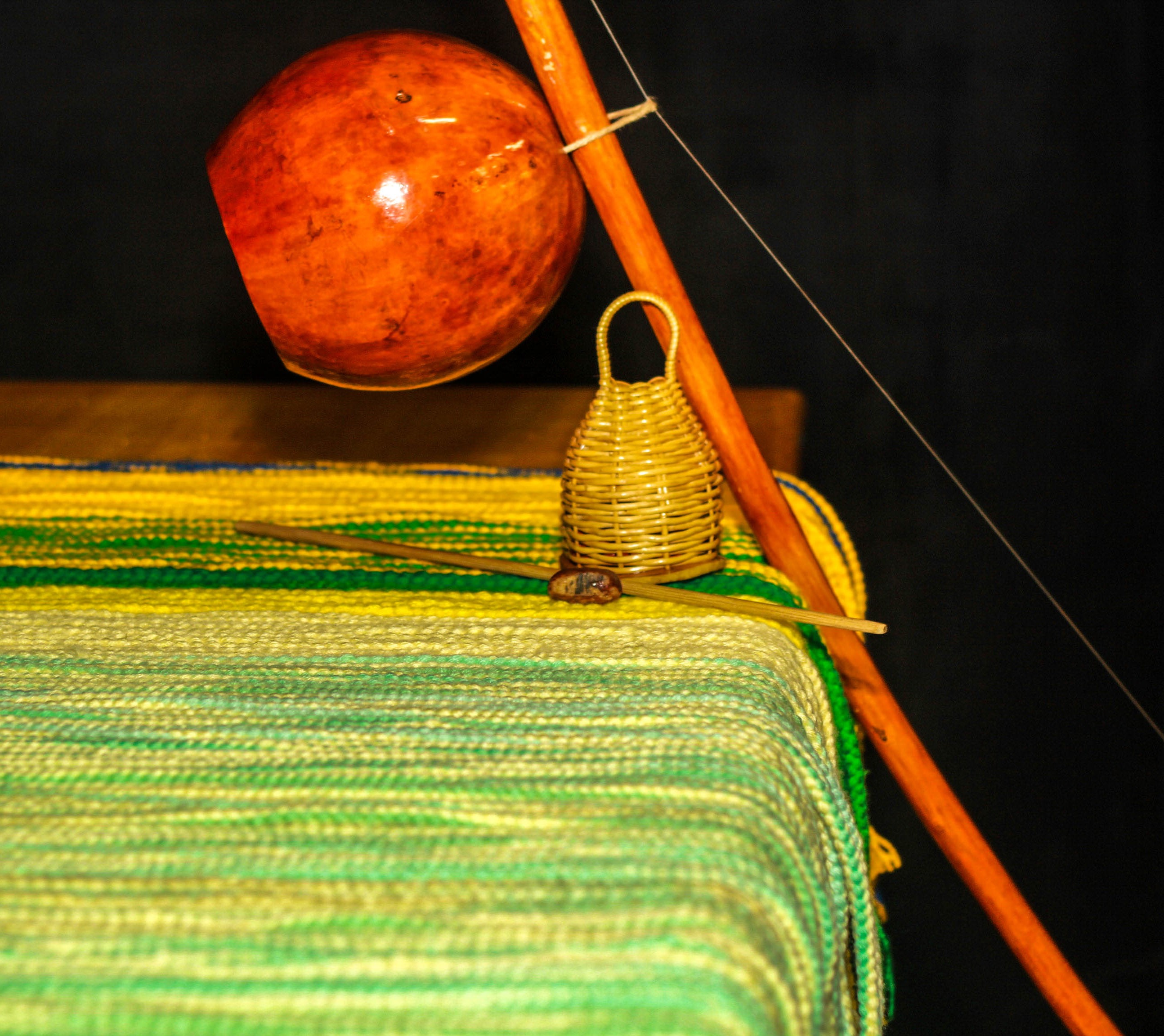 Trançado com quatro cores – Verde, Amarelo, Azul e Branco – todos escuros.